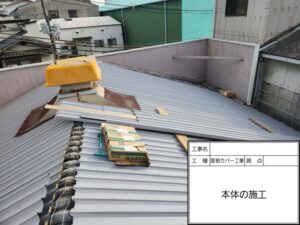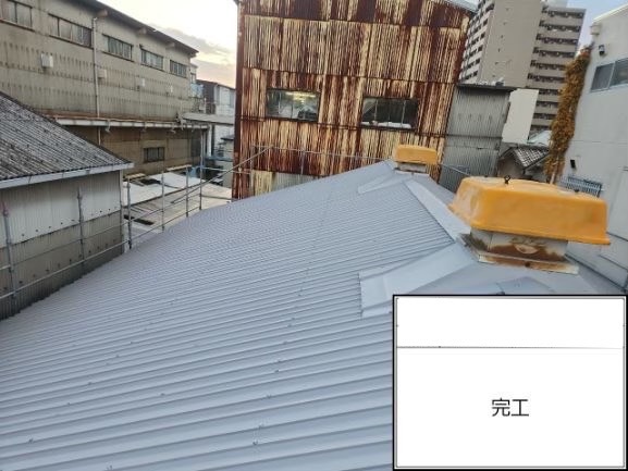 大阪市港区にて工場屋根の雨漏り修理〈大波スレートをガルバリウムでカバー工法〉