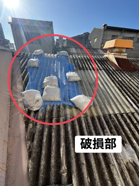 大阪市港区にあるU工業様より、「屋根の雨漏りが長年続いていて、最近の風災で一部が飛んでしまった」とのご相談をいただきました。