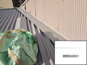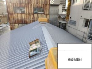 屋根の棟(頂上部分)には板金の立ち上げ加工を施しました。この加工を行うことで、棟部分からの雨の吹き込みを防ぎます。