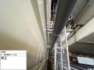 新たに設置したのは、Panasonicの前高W型雨樋で、芯材に鉄が入った非常に頑丈な素材。集水力にも優れており、大型施設などでも使用される信頼性の高い製品です。