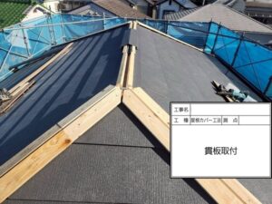 今回は腐食しにくい素材を使用し、長期耐久性を高めています。貫板は棟板金を固定する重要な下地材であり、ここが劣化すると棟板金の浮きや飛散につながります。